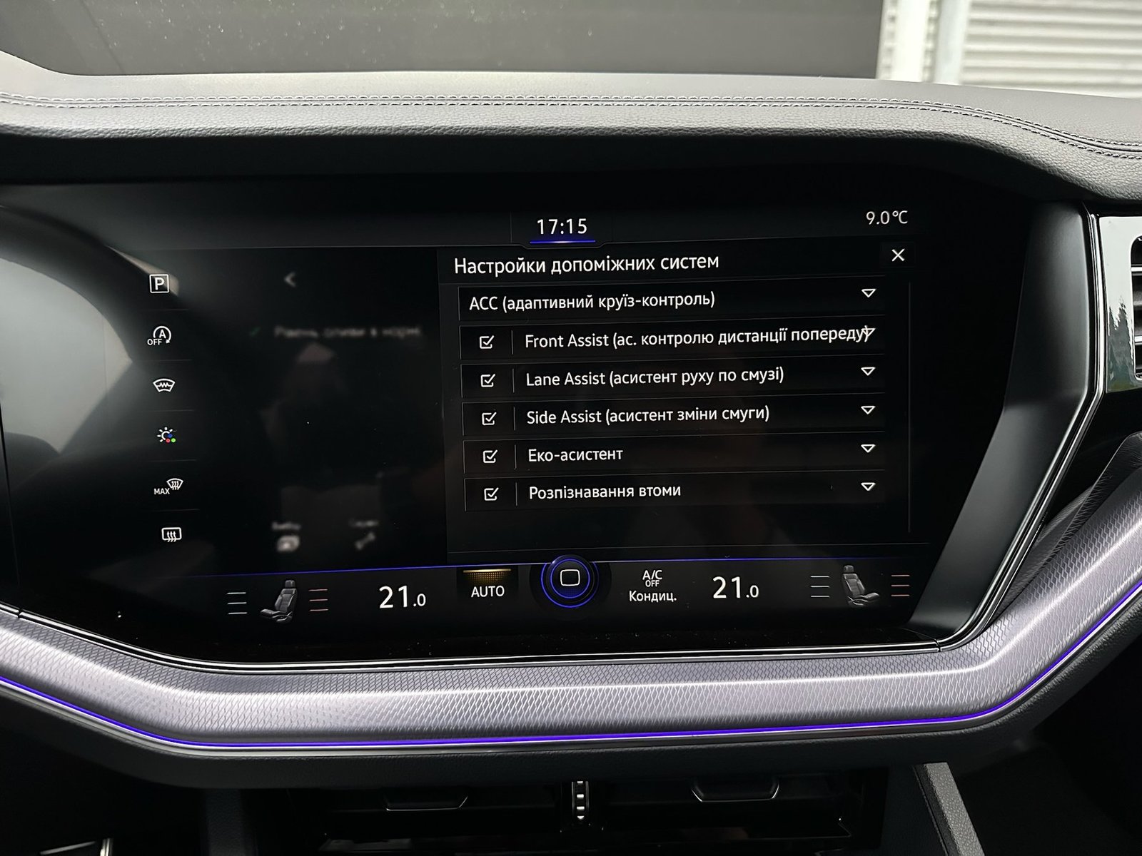 Пакет асистентів водія: зміни смуги руху та допоміжний асистент при виїзді з паркувального місця