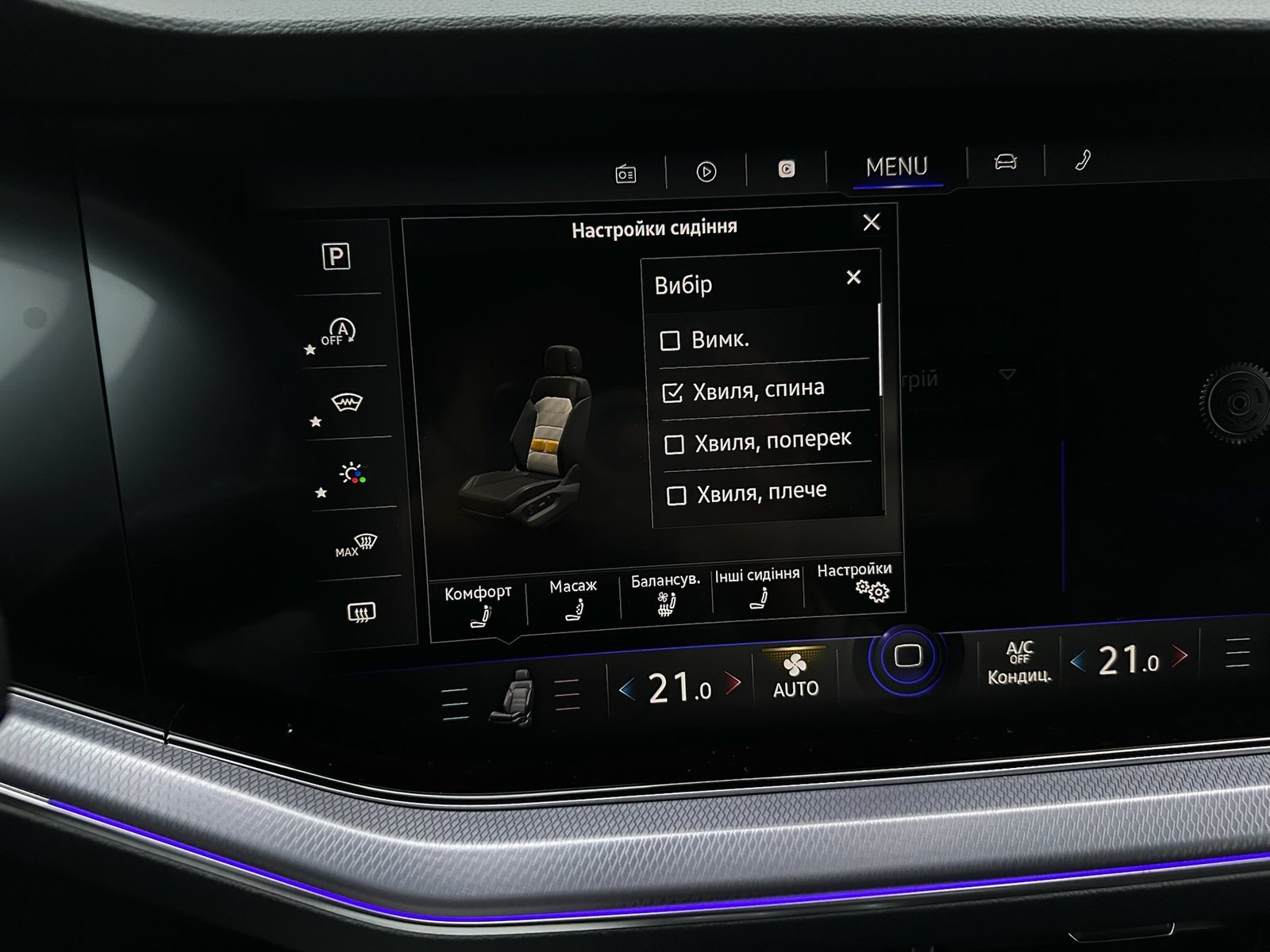 Передні сидіння з масажем та активною кліматизацією